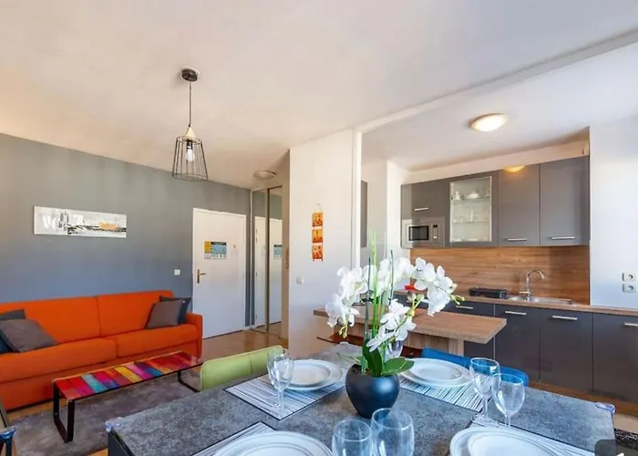 Gasten kunnen gemakkelijk het Aquarium Sea Life Paris Val D'Europe vinden, dat op een klein stukje lopen van dit appartement van 47 m^2 ligt. Tot de interessante bezienswaardigheden behoort onder andere La Vallée Village, gelegen op 10 minuten lopen van de 1-badkamer accommodatie.